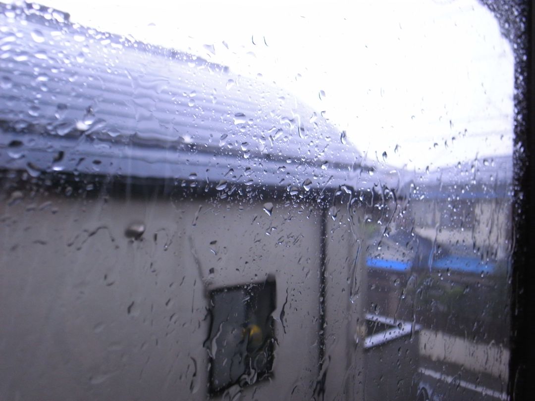 突然の雷雨にひっくり返らんばかりに驚いて慌てて入り口に