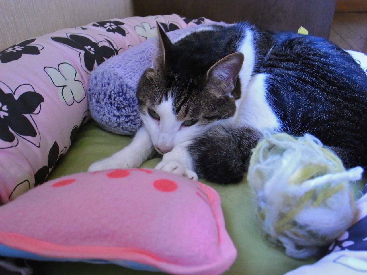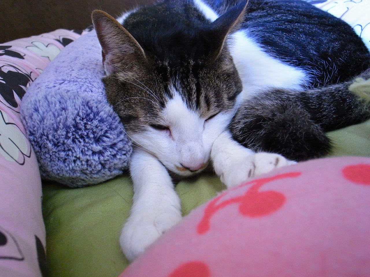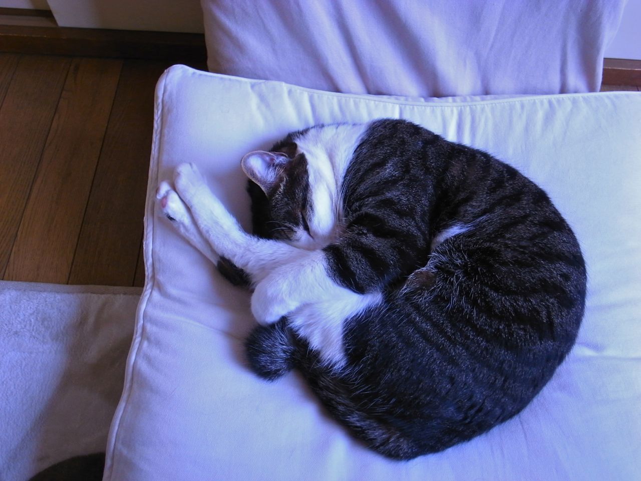 前足を投げ出した寝方が仔猫っぽくて可愛いです。